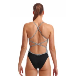 Voeg een sportieve touch toe aan uw zwemkleding zonder afbreuk te doen aan uw vrouwelijke figuur. Dit tijdloze zwarte zwempak is geaccentueerd met heldere witte en blauwe biezen onder de borst voor een subtiel vleugje kleur en om uw vorm te versterken. De verstelbare bandjes en de naad onder de borst zorgen voor comfort en ondersteuning tijdens het zwemmen. Onze ShapeComprex Ultra stof geeft u een slanker silhouet en de XtraLife lycra gaat twee keer zo lang mee als standaard zwemkledingstoffen. Ze zijn perfect voor regelmatige sessies.