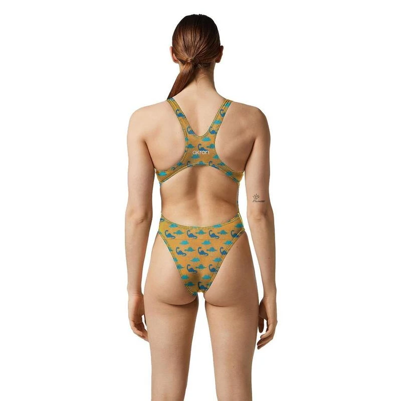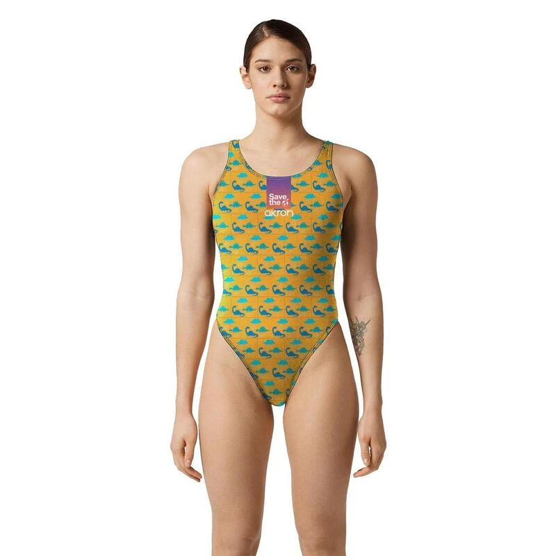 Laat je vrienden en teamgenoten zien hoeveel je om het milieu geeft met het Save the Dino zwempak uit de nieuwe Akron serie voor dames, gemaakt van gerecyclede flessen.